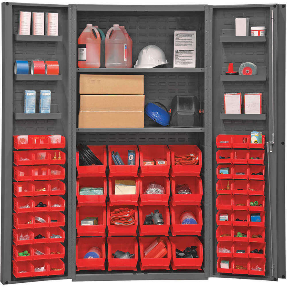 DURHAM MANUFACTURING DC36-642S6DS-1795 Industrial Cabinet, 14 Gauge, 64 Bin, Red