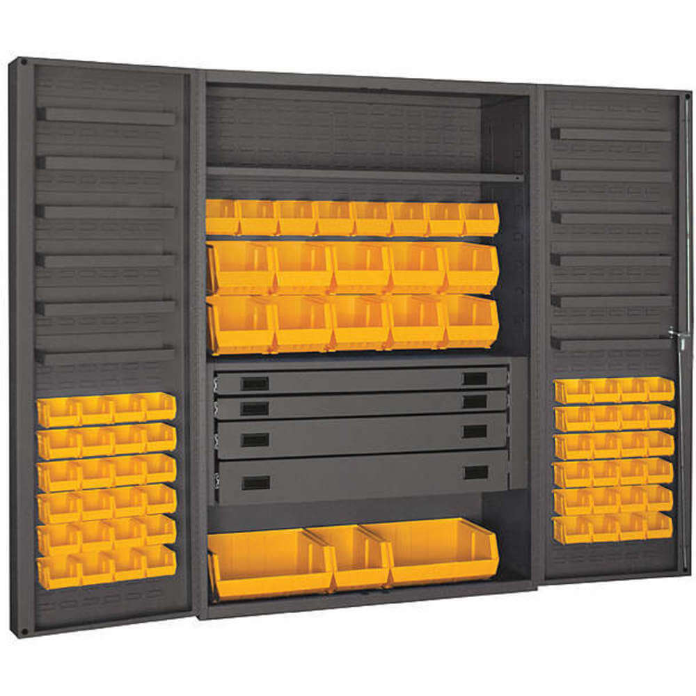 DURHAM MANUFACTURING DCBDLP694RDR-95 Industrial Cabinet, 14 Gauge, 69 Bin, Height 72 Inch, Yellow