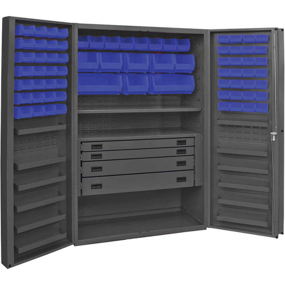 DURHAM MANUFACTURING DCBDLP724RDR-5295 Industrial Cabinet, 14 Gauge, 72 Bin, Height 72 Inch, Blue
