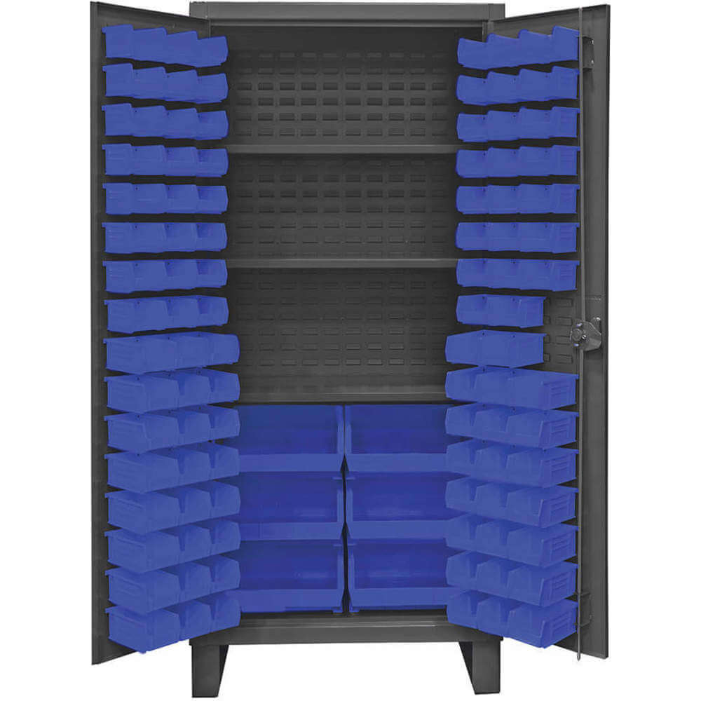 DURHAM MANUFACTURING HDC36-102-3S5295 Industrial Cabinet, 12 Gauge, 102 Bin, Blue