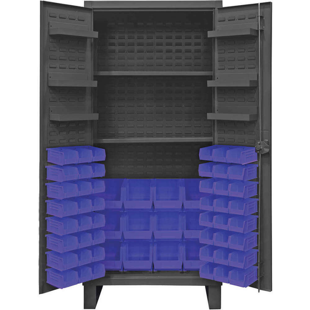 DURHAM MANUFACTURING HDC36-60-2S6D5295 Industrial Cabinet, 12 Gauge, 60 Bin, Blue