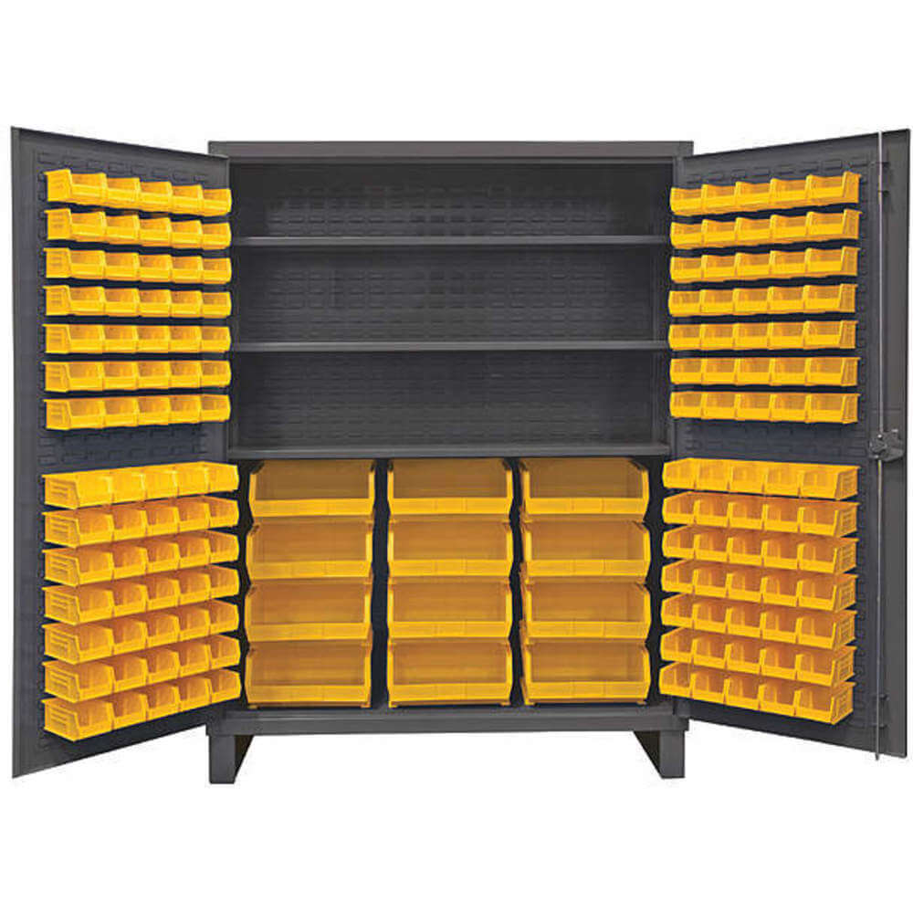 DURHAM MANUFACTURING HDC60-156-3S95 Industrial Cabinet, 12 Gauge, 156 Bin, Yellow