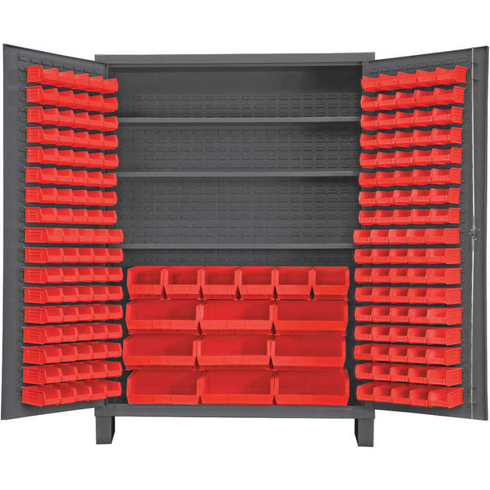 DURHAM MANUFACTURING SSC-185-3S-1795 Industrial Cabinet, 14 Gauge, 185 Bin, Red