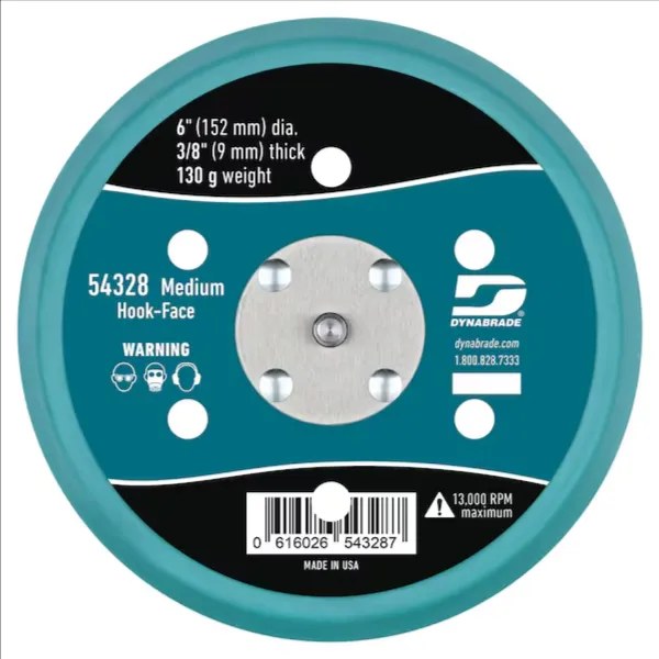 DYNABRADE 54328 Vacuum Disc Pad, Hook-Face, Short Nap, 6 Inch Dia