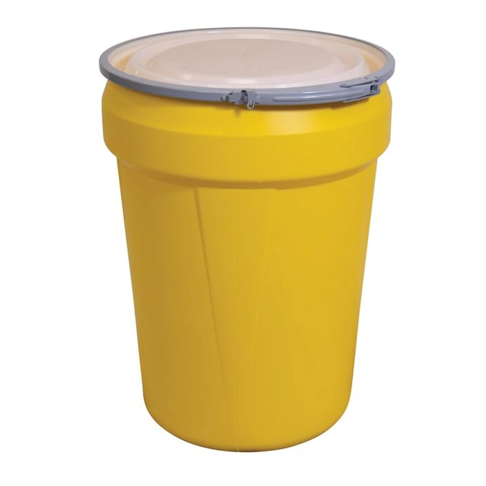 EAGLE 1601M Open Head Poly Drum, 30 Gallon, Yellow with Metal Lever-Lock Ring