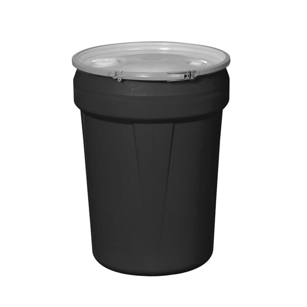 EAGLE 1601MBLKBG Open Head Poly Drum, 30 Gallon, Black, Metal Lever Lock With Bung Lid