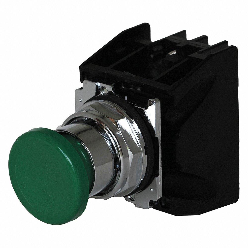 EATON 10250T710G Hazardous Location Push Button With Contacts, Green, 30 mm Size, 1 NC/1 NO, Metal