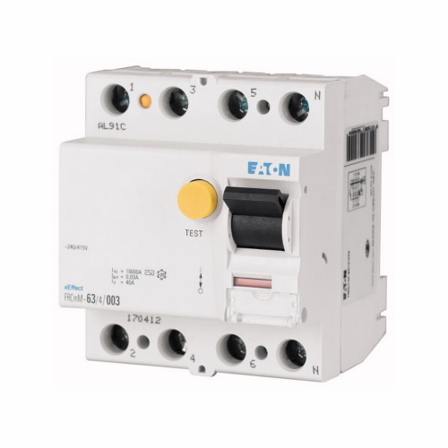 EATON 167108 Residual Current Circuit Breaker, 40A, 4-Pole, 30Ma, Type G/A