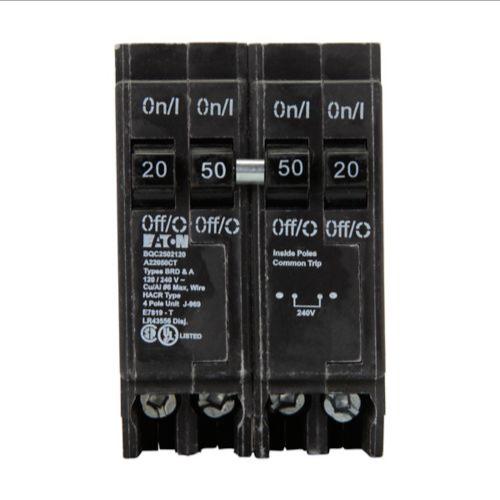 EATON BQC2502120 Thermal Magnetic Circuit Breaker, Type Bqc, 4-Pole 20 A, 2-Pole 50 A, 4-Pole, 120/240V
