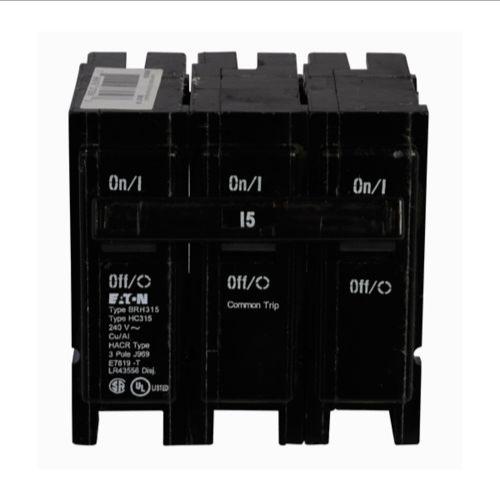 EATON BRH315 Thermal Magnetic Circuit Breaker, Type Br, 15 A, 22 Kaic, 3-Pole, 240V, #14-4 Awg Cu/Al