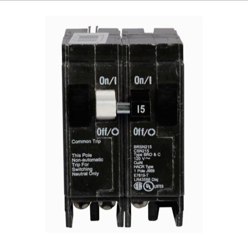 EATON BRSN215 Thermal Magnetic Circuit Breaker, Type Br, 15 A, 10 Kaic, 2-Pole, 120V, #14-4 Awg Cu/Al