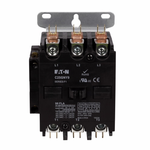EATON C25GNY9 Definite Purpose Contactor, Quick Connection, 9A, 2 And 3-Pole, Non-Reversing