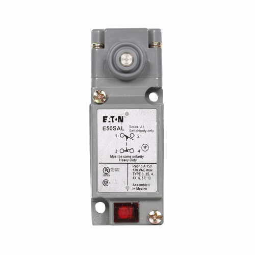 EATON E50ALS1 Plug-In Limit Switch, Assembled, Side Pushbutton Actuator, 1NO-1NC Contact, 1P