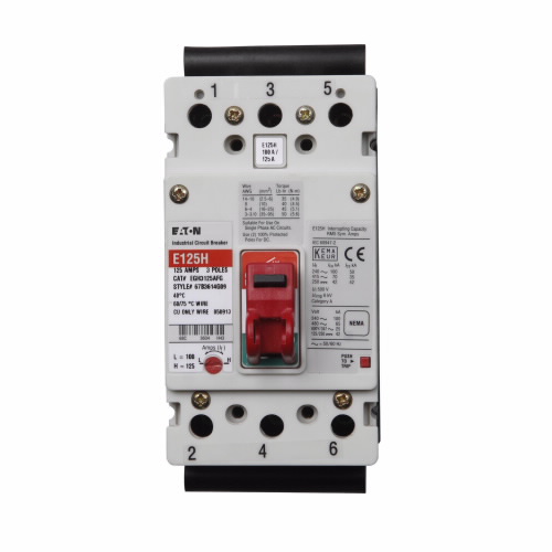 EATON EGH3125AFG Molded Case Circuit Breaker, Adjustable Thermal, 3-Pole, 125A, 600Y/347 Vac, 50/60 Hz