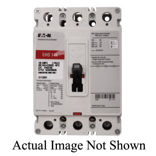 EATON EHD3025-GR1 Molded Case Circuit Breaker, 240/480 VAC/250 VDC, 25A, 10/14/18 kA Interrupt, 3P