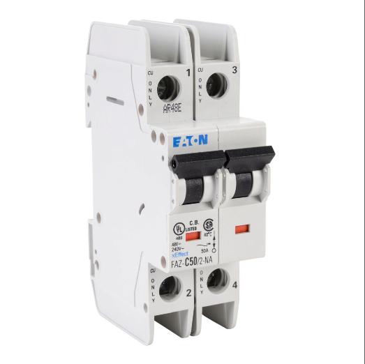 EATON FAZ-C50-2-NA Miniature Circuit Breaker, Current-Limiting, 50A, 240 VAC/ 96 VDC, 2-Pole, C Curve