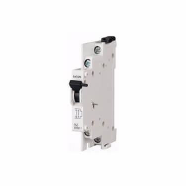 - Eaton FAZ-XHIN11 auxiliary contact has 1 NO / 1 NC configuration for both circuit interruption and circuit completion options in electrical control systems.