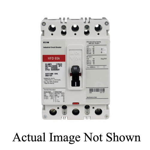 EATON HFD3040-GR1 Molded Case Circuit Breaker, Type HFD, 240/480/600 VAC/250 VDC, 40A, 3P