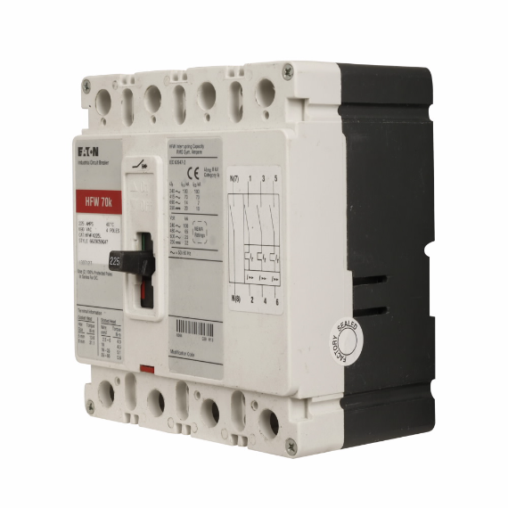 EATON HFWF4025L Molded Case Circuit Breaker, Type HFWF, 240 VAC, 25A, 70 kA Interrupt, 4P