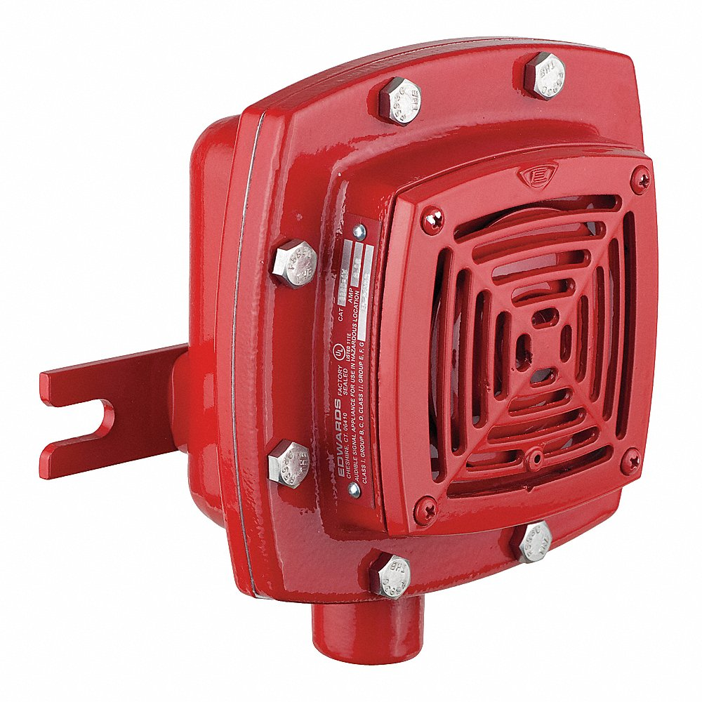 EDWARDS SIGNALING 889D-AW Vibrating Horn, 20 24VDC, Red, 7 3/8 x 4 3/16 x 7 5/8 Inch Size