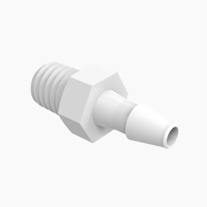 ELDON JAMES A1032T-1.5-200NK7 Adapter, 10-32 Taper Thread Size, 3/32 Inch Barb, Natural Kynar 740