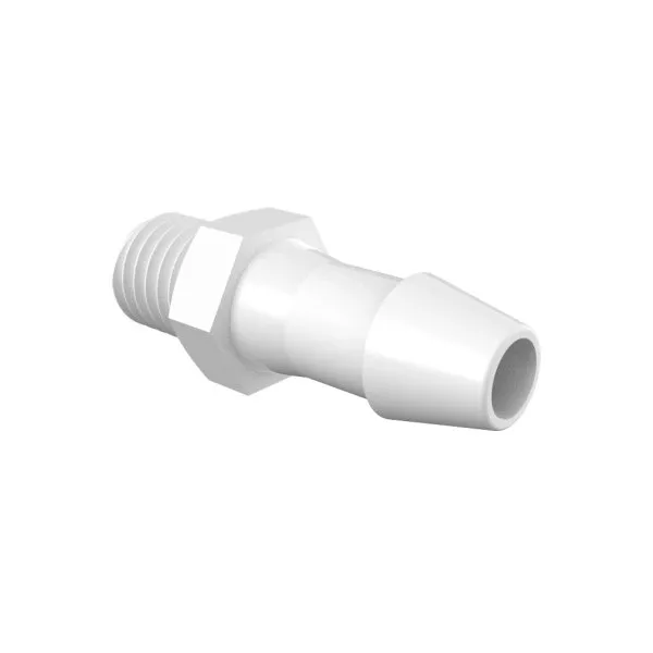 ELDON JAMES A1428-3-200PP Adapter, 1/4-28 UNF Thread Size, 3/16 Inch Barb, Polypropylene