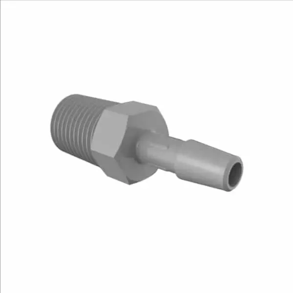 ELDON JAMES A4B-4PVDF Adapter, 1/4 BSPT Thread Size, 1/4 Inch Barb, Gray Kynar 740