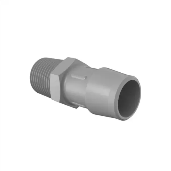 ELDON JAMES A8-12PVDF Adapter, 1/2 NPT Thread Size, 3/4 Inch Barb, Gray Kynar 740