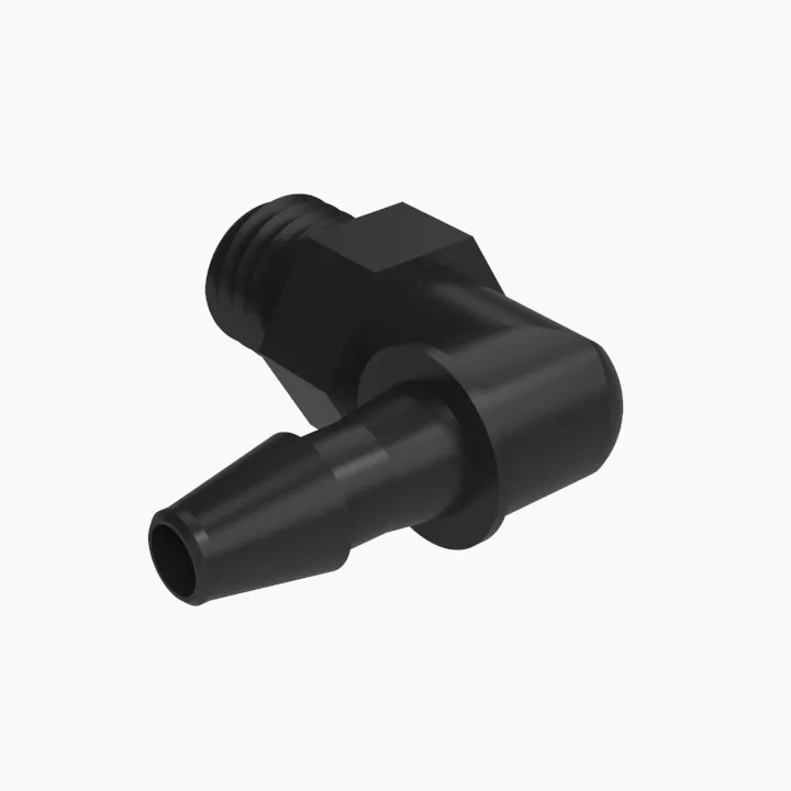 ELDON JAMES L1428-2-200BN Black Nylon Elbow, 1/4 28 UNF Size, 1/8 Inch Inside Dia.