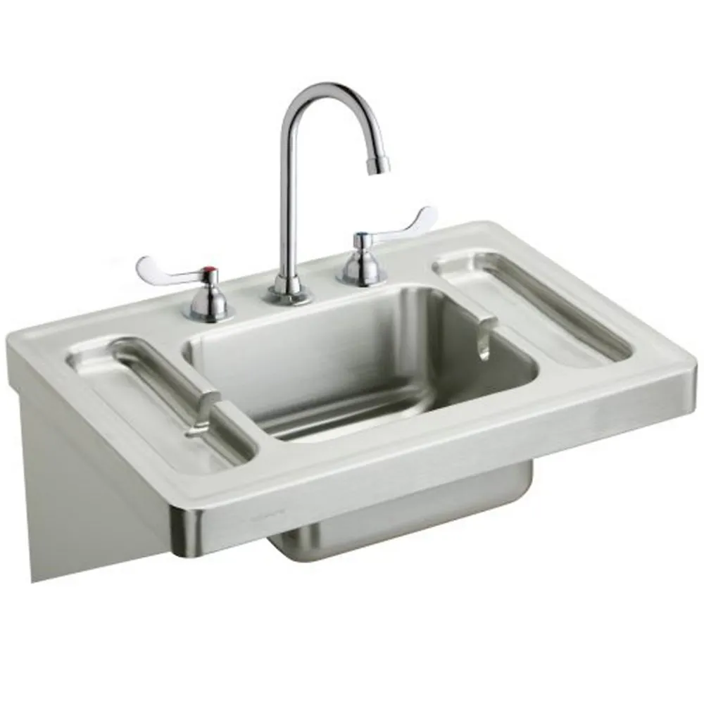 ELKAY ESLV2820W4C Wall Hung Lavatory Sink Kit, Stainless Steel, 28 x 20 x 7-1/2 Inch Size