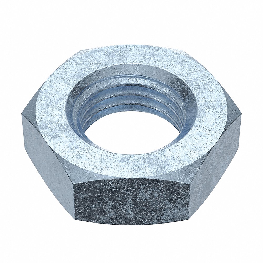 FABORY B11391.125.0001 Jam Nut, 1 1/4 In - 7 Thread Size, Steel, 23/32 In Ht., Gr. A, Zn Plated, Heavy Hex