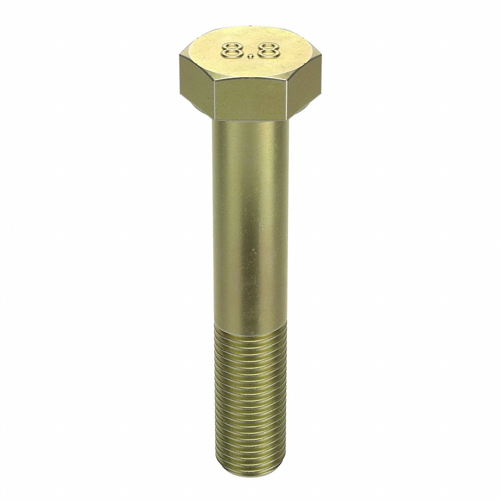 FABORY M01241.100.0070 Hex Head Cap Screw, M10x1 Thread Size, Steel, 70mm Lg., 6.4mm Head Ht., Fine, Yellow Zn Plated