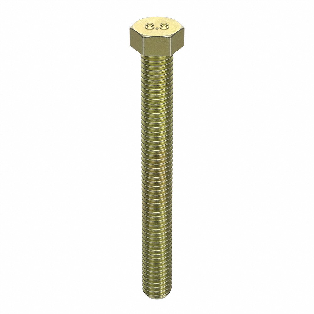 FABORY M01241.120.0110 Hex Head Cap Screw, M12x1.25 Thread Size, Steel, 110mm Lg., 7.5mm Head Ht., Fine, Yellow Zn Plated