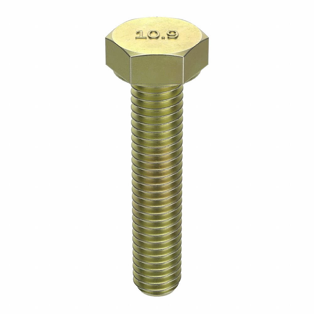 FABORY M04114.080.0040 Hex Head Cap Screw, M8x1.25 Thread Size, Steel, 5.3mm Head Ht., Coarse, Yellow Zn Plated, 40mm Thread Lg.