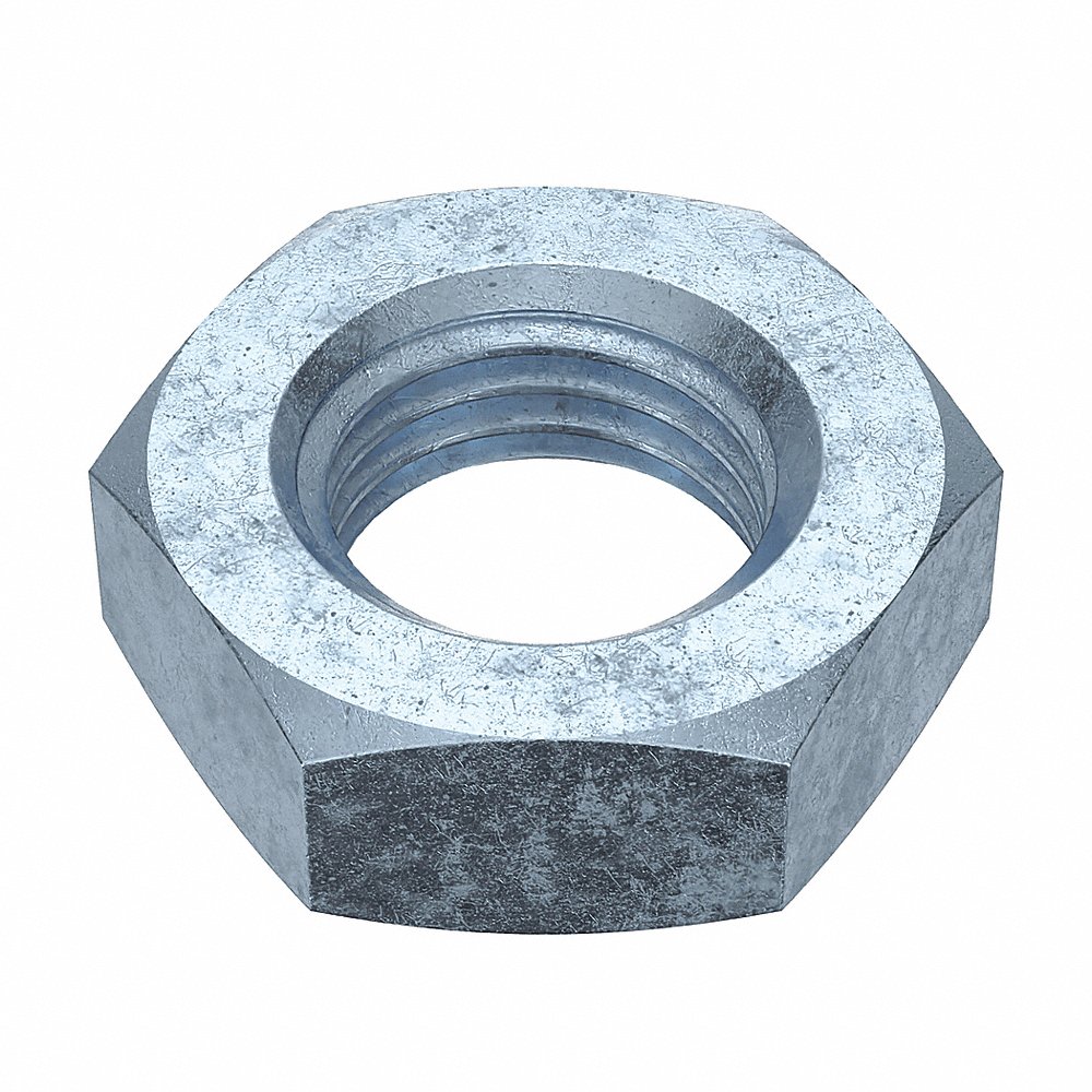FABORY U11391.150.0001 Jam Nut, 1 1/2 In - 6 Thread Size, Steel, 27/32 In Ht., Gr. A, Zn Plated