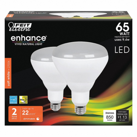 FEIT ELECTRIC LED BR40DM/927CA/2 Bulb, Medium Screw, 9.4W, LED, Gen Purpose