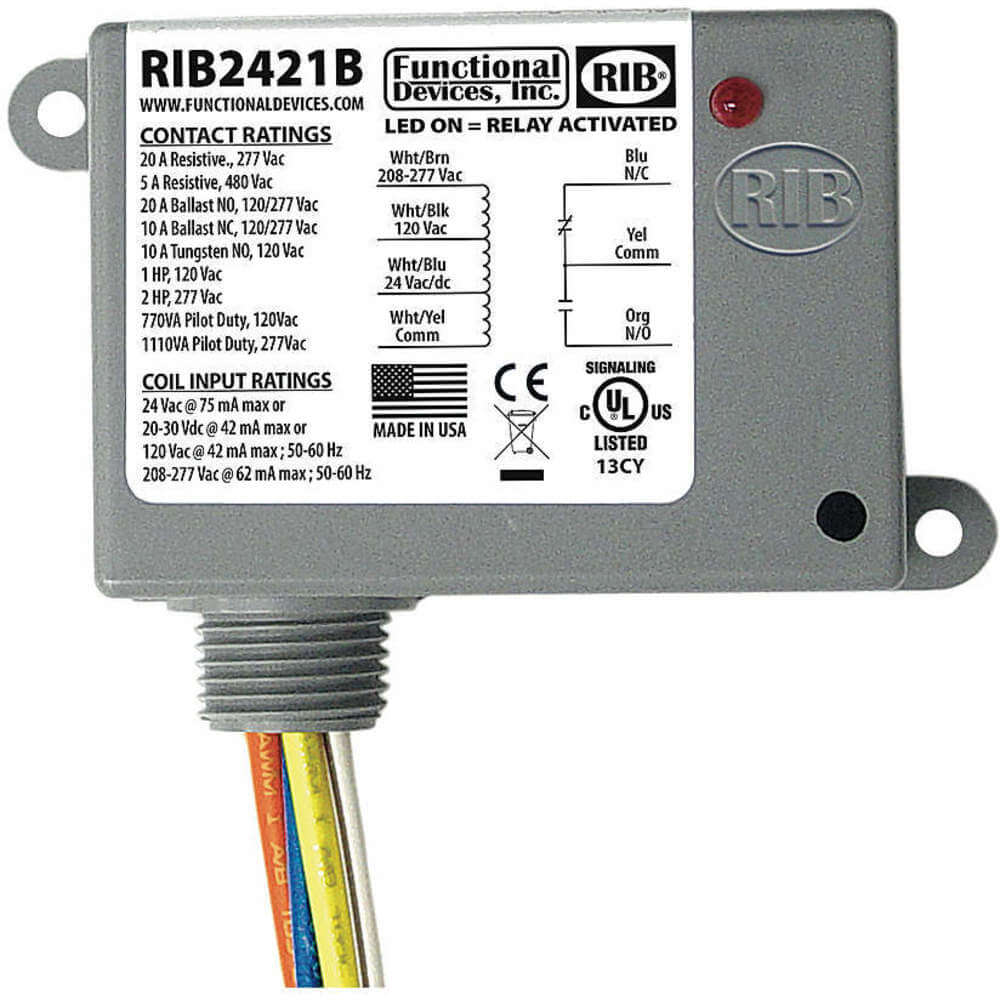 FUNCTIONAL DEVICES INC / RIB RIB2421B Enclosed Power Relay Spdt 20a @ 277vac