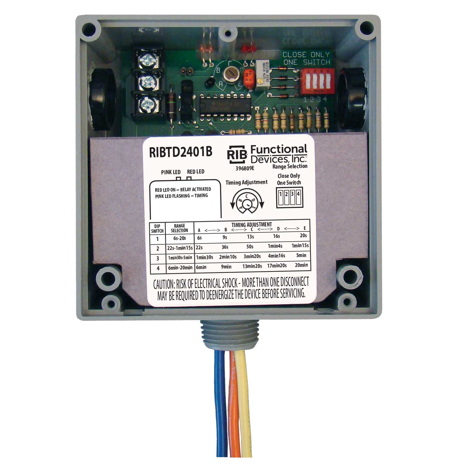 FUNCTIONAL DEVICES INC / RIB RIBTD2401B Enclosed Pre-Wired Relay, With 120 VAC Coil, Hi-Low Separate, Time Delay, 20 A