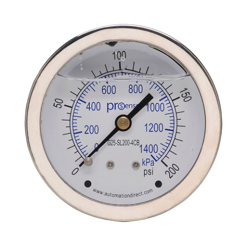 PROSENSE G25-SL200-4CB Mechanical Pressure Gauge, 2.5 Inch Dia., 0 To 200 Psig/0 To 1400 Kpa