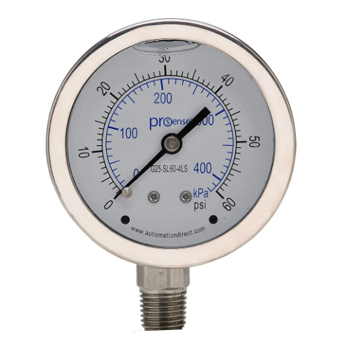 PROSENSE G25-SL60-4LS Mechanical Pressure Gauge, 2.5 Inch Dia., 0 To 60 Psig/0 To 420 Kpa