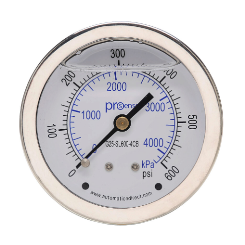 PROSENSE G25-SL600-4CB Mechanical Pressure Gauge, 2.5 Inch Dia., 0 To 600 Psig/0 To 4200 Kpa