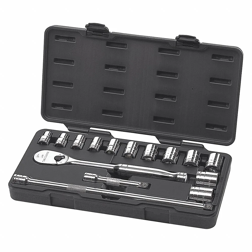 GEARWRENCH 80706 1/2 Inch Drive 6 Point Standard SAE Mechanics Tool Set, 15 Pcs