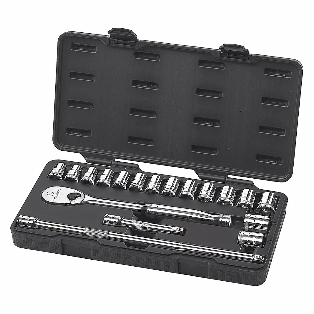GEARWRENCH 80708 1/2 Inch Drive 6 Point Standard Metric Mechanics Tool Set, 18 Pcs