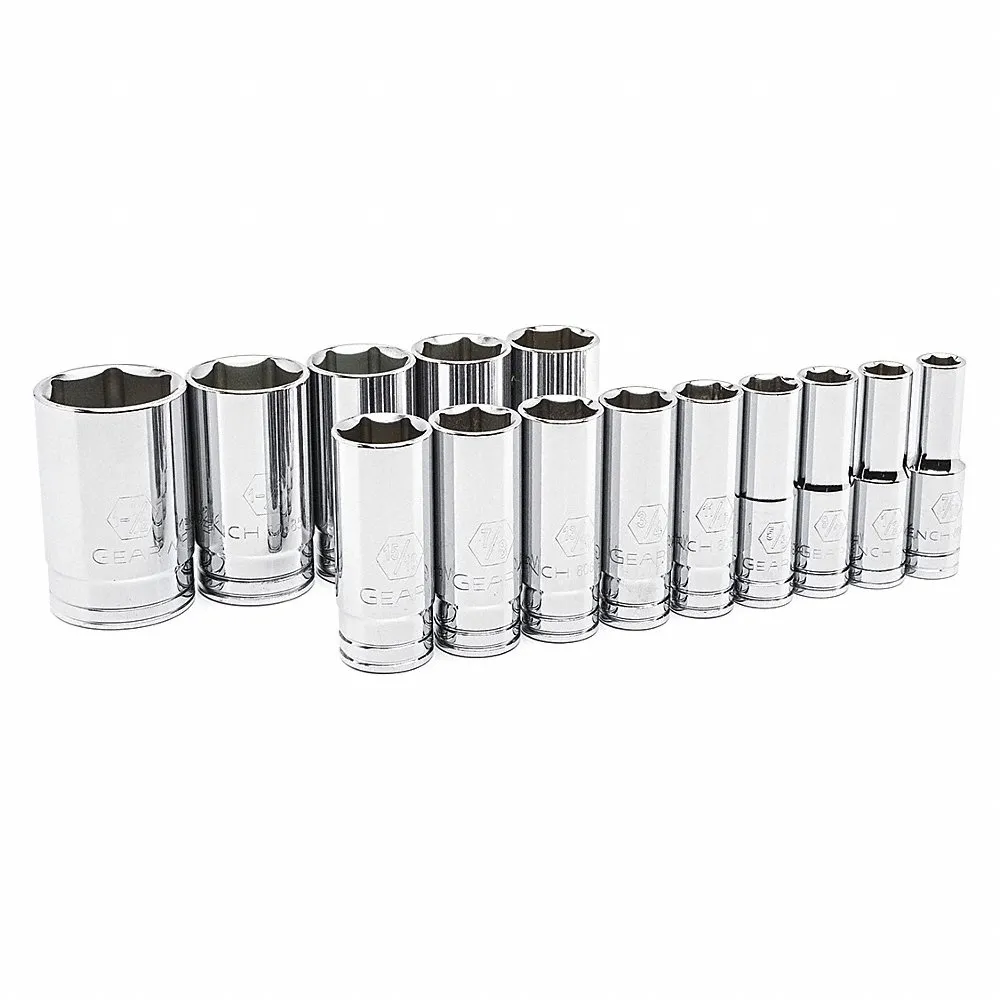 GEARWRENCH 80733 1/2 Inch Drive 6 Point Deep SAE Socket Set, 14 Pcs