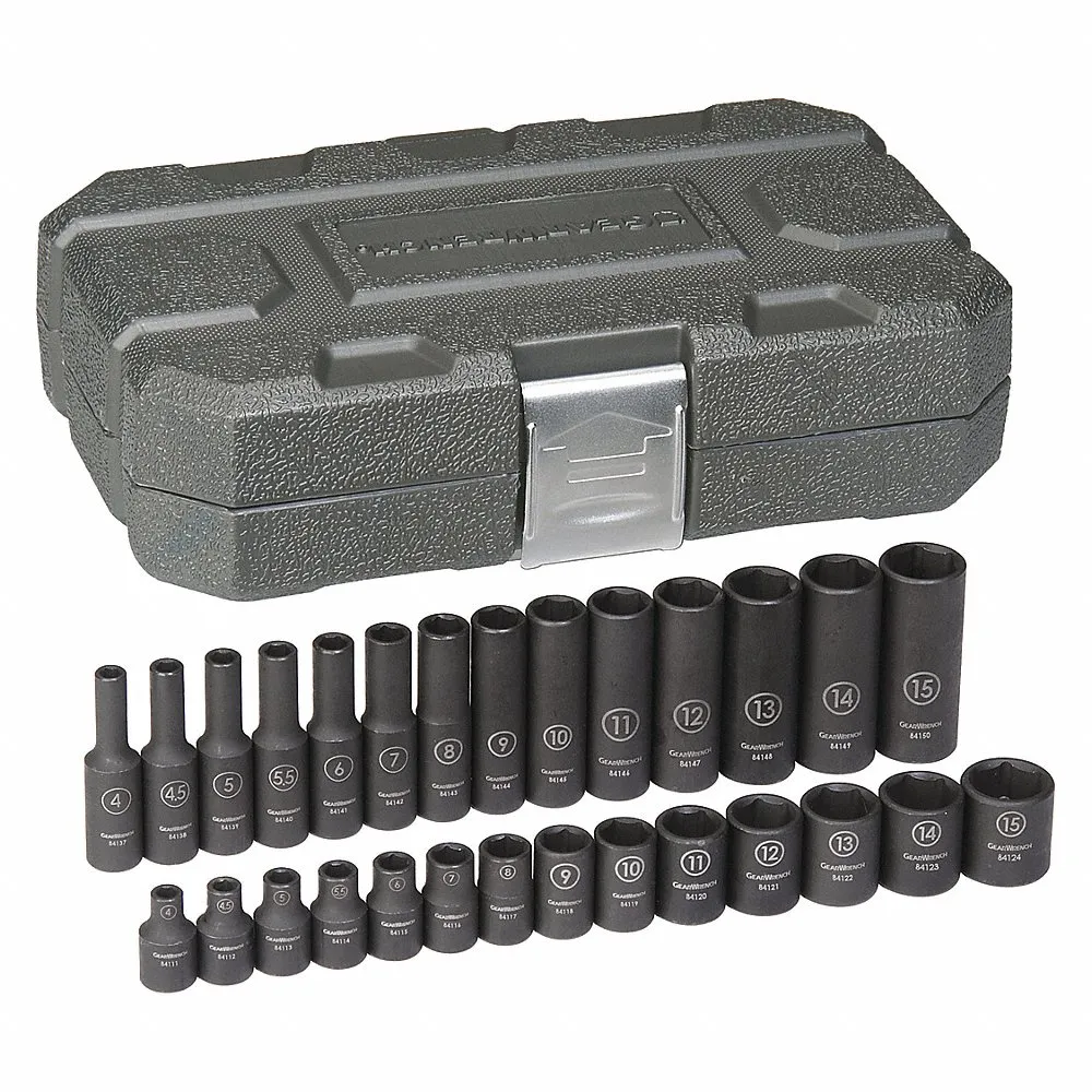 GEARWRENCH 84901 1/4 Inch Drive 6 Point Standard and Deep Impact Metric Socket Set, 28 Pcs
