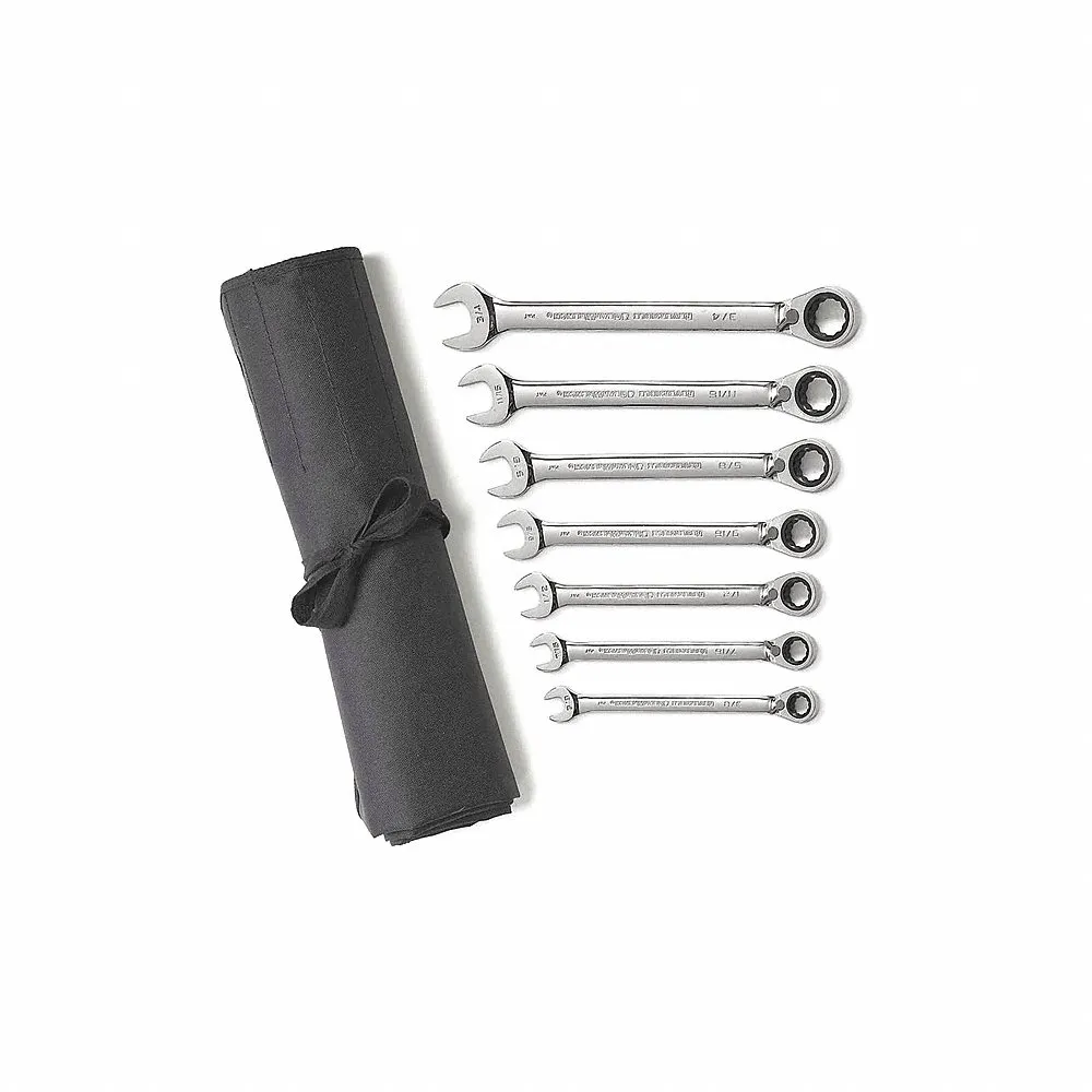 GEARWRENCH 9567RN 72-Tooth 12 Point Reversible Ratcheting Combination SAE Wrench Set with Tool Roll, 7 Pcs
