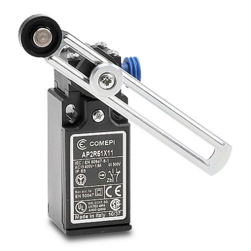 COMEPI AP2R51X11 Safety Limit Switch, Side Rotary Adjustable Lever With Nylon Roller, 1 N.C. Safety Output