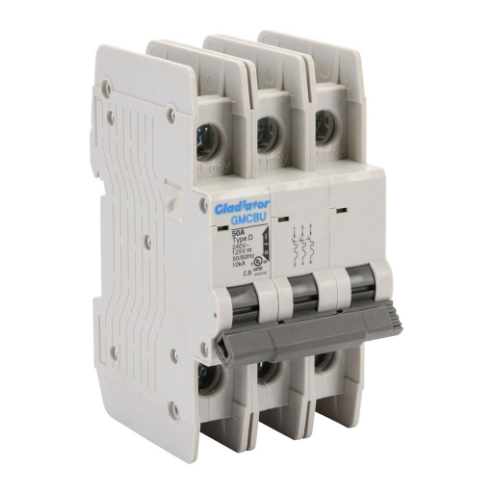 GLADIATOR GMCBU-3D-50 Miniature Circuit Breaker, 50A, 240 VAC/ 125 VDC, 3-Pole, D Curve, Thermal Magnetic