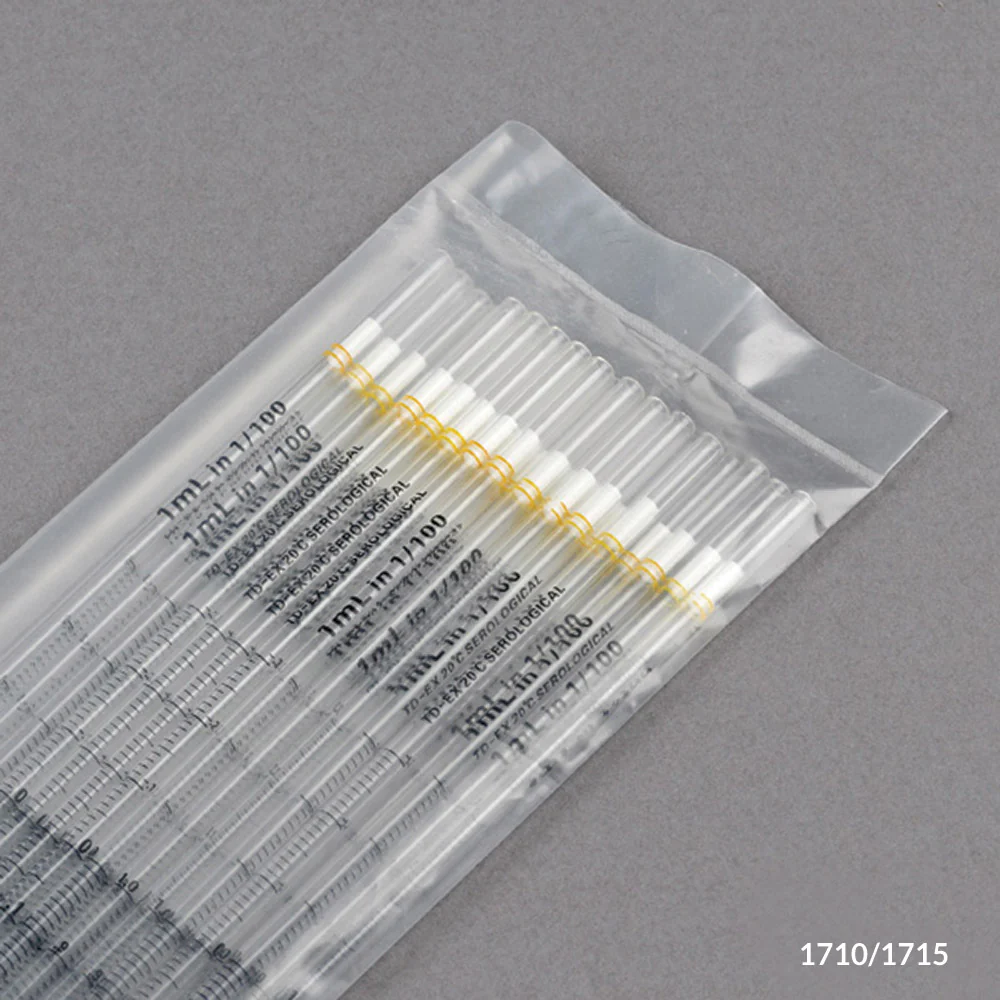 GLOBE SCIENTIFIC 1710 Serological Pipette, 1 ml, PS, Standard Tip, 275 mm, Sterile, Yellow Band