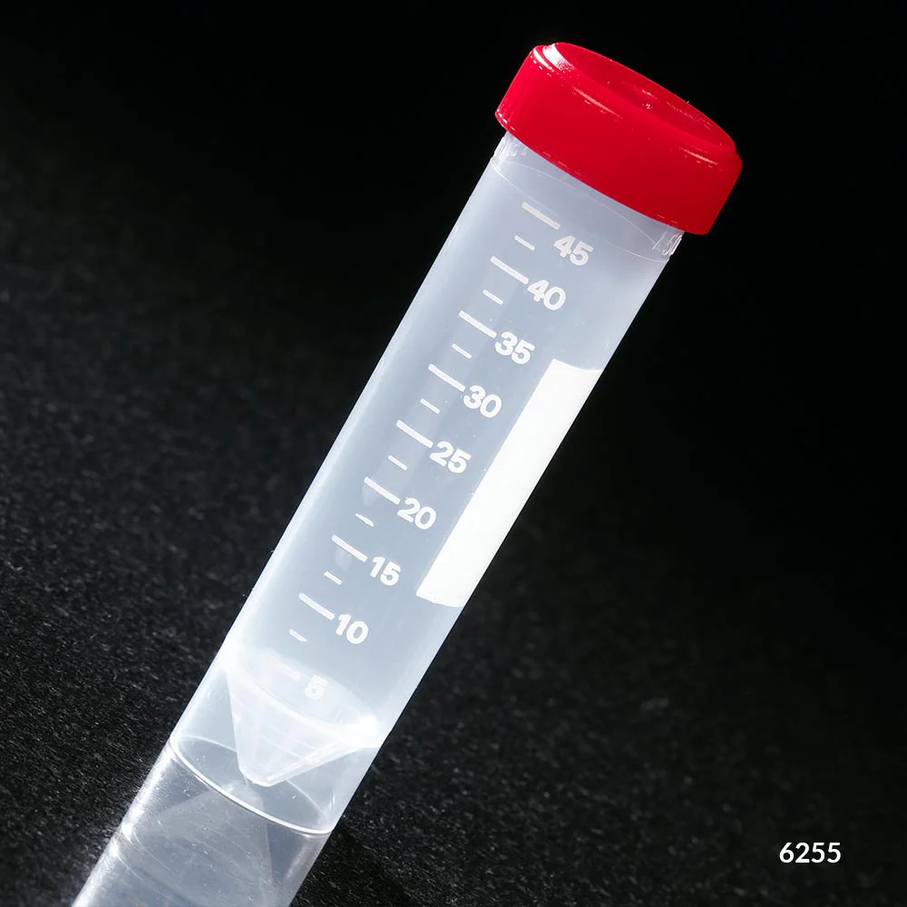 GLOBE SCIENTIFIC 6255 Transport Tube, 50 ml, Separate Red Screw Cap, PP, Printed Graduations